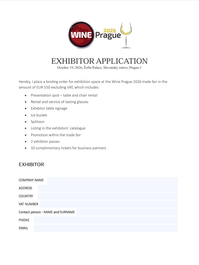 Does the online application not suit you? Download the PDF, fill it out, and send the scanned application to us by email at: info@wineprague.com